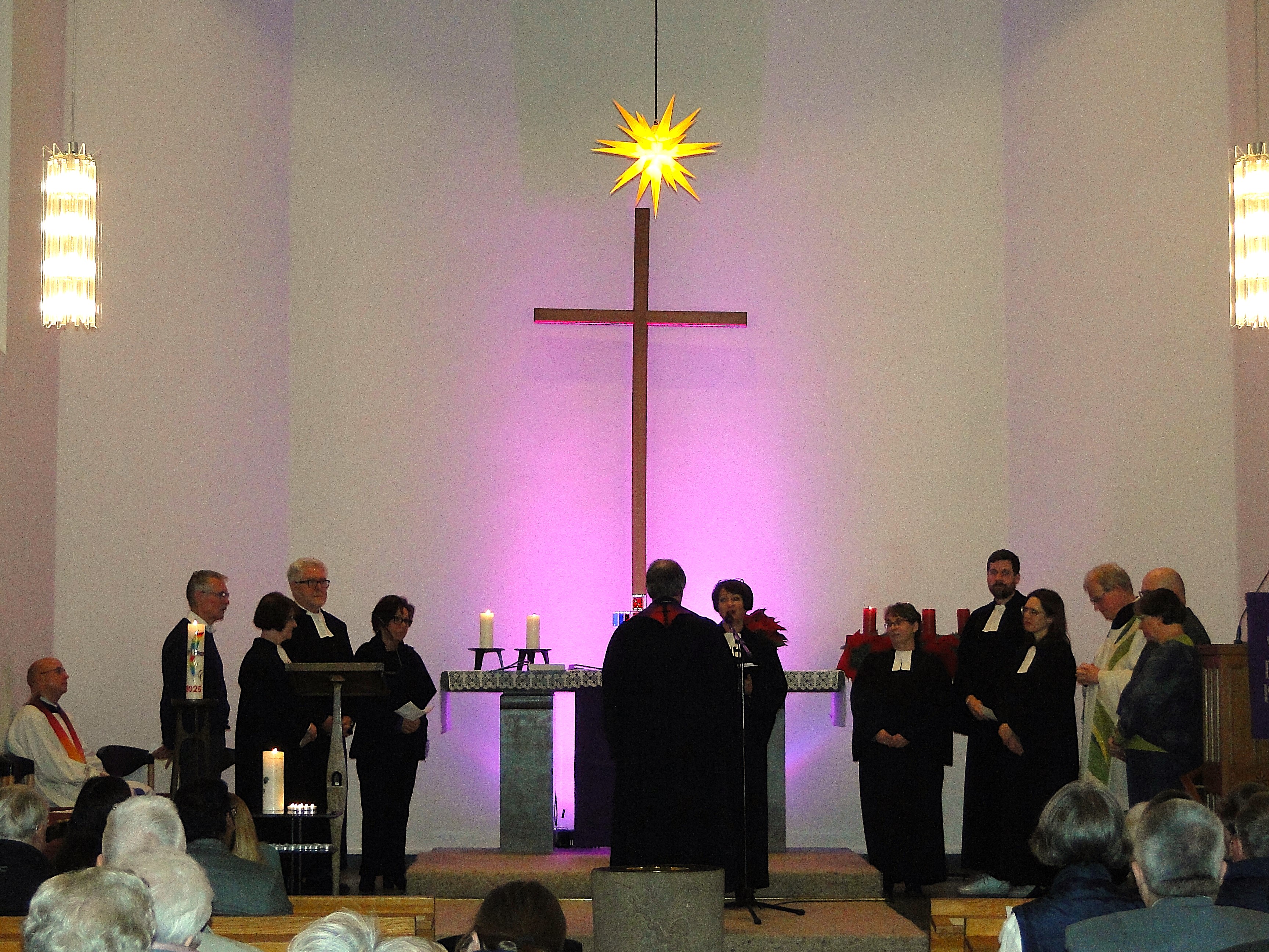 Am 3. Advent wurde unser Pfarrer Rüdiger Funke im Rahmen eines feierlichen Gottesdienstes verabschiedet. Im Anschluss lud ein kleiner Weihnachtsmarkt zum geselligen Zusammensein und gemeinsamen Essen ein, bei dem die Familie, Gemeinde und Gäste ihn in den wohlverdienten Ruhestand verabschiedeten.